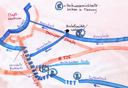 die beiden anderen Rückhaltebecken am Tüskenbach ist die Stadt