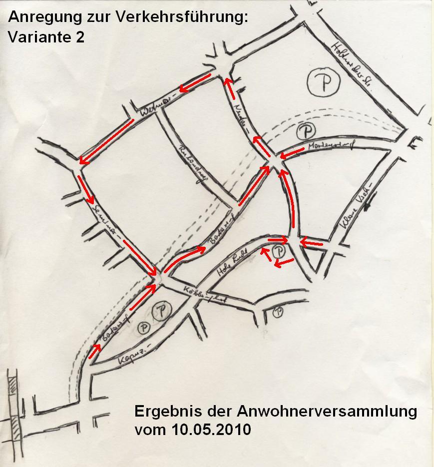 Nachbarstraßen eingebracht wurden. Mit Hilfe von Einbahnstraßen - so diese