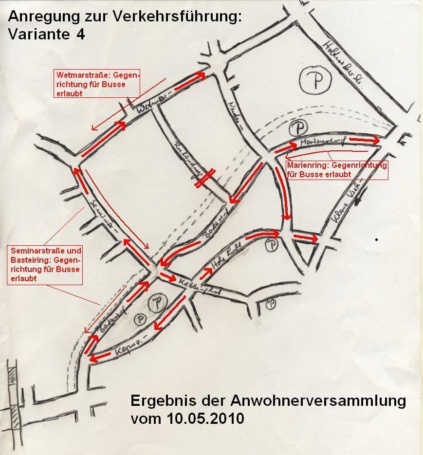 Durchgangsverkehrs auf Basteiring, Marienring und anderen umgebenden